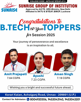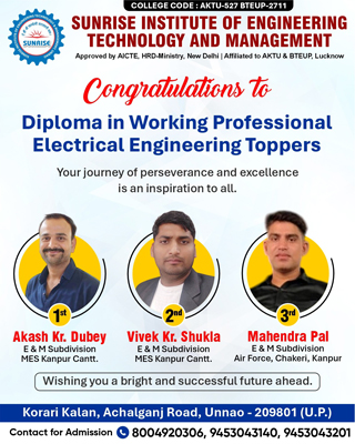 It gives me immense pleasure to associate myself with visionary and illustrious Shri. Ramesh Chandra Shukla ji & other board members who have widened their horizon further by opening a new engineering college “Sunrise Institute of Engineering Technology and Management” Unnao ( Uttar Pradesh ) to fulfill the need of globalized, industrialized and liberalized economy all over the world by producing well qualified and dedicated technocrats from their institutions.